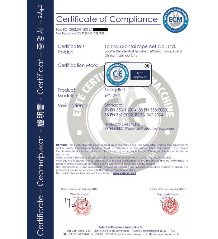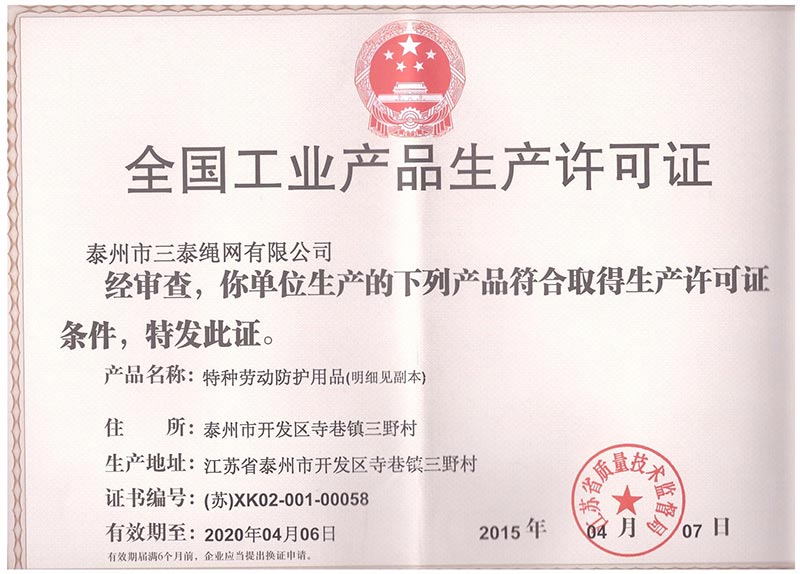 泰州市三泰健康科技有限公司(原 泰州市三泰繩網(wǎng)有限公司),本公司成立于1988年12月22日,至今近30年的生產(chǎn)歷程。多年來的生產(chǎn)經(jīng)驗(yàn),加之我們不斷的創(chuàng)新,已經(jīng)建設(shè)成為集研制、開發(fā)、生產(chǎn)、銷售為一體的龍頭企業(yè)。公司生產(chǎn)線由捻線車間、制繩車間、織網(wǎng)車間、織帶車間、織(絞)繩車間、安全網(wǎng)組裝車間、安全帶組裝車間、檢驗(yàn)室等組成。企業(yè)現(xiàn)有職工155人,企業(yè)管理人員6名,市場研發(fā)人員8名,專業(yè)質(zhì)檢人員2名,......
